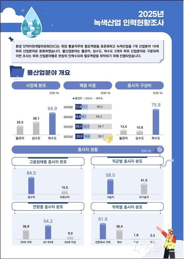 키워드:한국상하수도협회, 물산업 인력현황,녹색산업 인재양성,물산업 HRD 보고서,환경 인적자원개발,환경ISC,상하수도 인력수요,물관리 산업 전망,하수도 인력 확대,탄소중립 인재정책,디지털 전환 물산업,녹색일자리,환경산업 직무변화,기후변화 대응 인력,물산업 노동시장