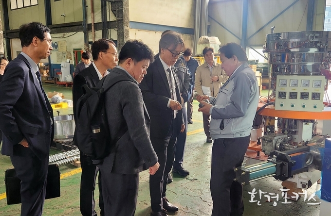 금한승 제1차관은 경기도 시흥 소재 생산설비 업체와 화성 소재 종량제봉투 제작업체를 차례로 방문해 설비 제작 공정과 재생원료 적용 현황, 품질 등을 점검하고 현장 의견을 청취했다.