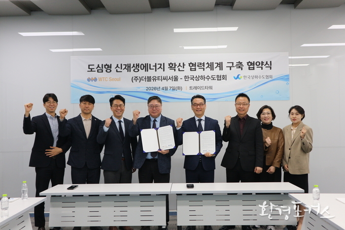 한국상하수도협회는 4월 7일 서울 코엑스에서 ㈜더블유티씨서울(WTCS)과 도심형 신재생에너지 확산을 위한 업무협약을 체결했다고 밝혔다.