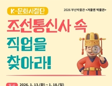[환경포커스=부산] 부산시립박물관(이하 부산박물관)은 2026년 겨울엔 박물관, 「케이(K)-문화사절단, 조선통신사 속 직업을 찾아라!」를 오는 1월 13일부터 1월 18일까지 운영한다고 전했다. 이번 교육은 초등학생을 대상으로 한 겨울방학 프로그램이며, 부산박물관 상설전시실에 전시된 조선통신사 유물을 중심으로 진행된다. 매일 오전 10시와 오후 2시, 하루 2회씩 총 12회로 구성되며, 회차별 20명의 초등학생이 참여할 수 있다. 교육과정은 '조선통신사' 관련 유물을 중심으로 ▲조선통신사 역할 이해 ▲조선통신사 속 직업 탐구 ▲조선통신사 외교 여권 만들기 등 다양한 활동이 진행될 예정이다. 교육 진행은 교육실에서 ▲조선통신사의 역사적 의의와 역할을 이해하고, 조선통신사에 참여한 다양한 직업에 대해 학습한다. 이어 ▲부산관 전시실에서 조선통신사 관련 유물을 탐구하고, 활동지를 통해 복습하는 시간을 가진다. 마지막으로 내가 조선통신사로 참여한다면 하고 싶은 직업을 선택하고, ‘조선통신사 외교 여권’ 만들기 체험으로 마무리한다. 프로그램 참가 신청은 오늘(6일) 오전 10시부터 시 통합예약시스템(reserve.busan.go.kr)에서 선착순 접수로 진행되며,