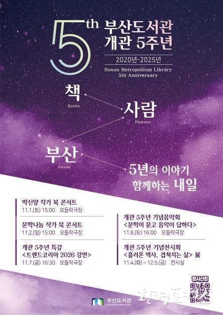 [환경포커스=부산] 부산도서관(이하 도서관)은 2020년 11월 개관 이후 5주년을 맞아, 오는 11월 한 달간 「부산도서관 개관 5주년 기념행사」를 개최한다고 전했다.