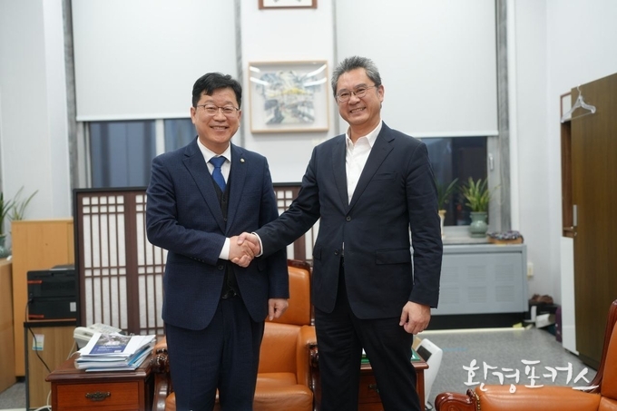 [환경포커스=국회] 국회 기후에너지환경노동위원회 안호영 위원장이 축산 분야 온실가스 감축과 녹색산업 경쟁력 강화를 위해 글로벌 기업 협력에 나섰다. 안 위원장은 글로벌 생명과학기업 DSM-Firmenich의 메탄 저감 사료첨가제 ‘Bovaer(보베어)’ 아시아 생산공장의 새만금 유치 방안을 논의하며, 저탄소 녹색축산 기반 구축을 본격 추진하고 있다고 11월 28일 밝혔다.