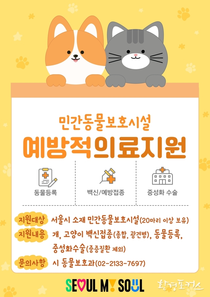[환경포커스=서울] 서울시는 소규모 민간동물 보호시설을 대상으로 ‘수의사가 찾아가는 예방 중심의 필수 의료 서비스’를 무상으로 지원하고 있다고 전했다.