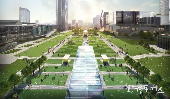 GBC 중앙에는 영동대로와 지상광장을 연결하는 14,000㎡의 대규모 ‘도심숲’도 들어선다. 민간개발 복합단지 내 녹지공간 중 국내 최대 규모로 서울광장(13,207㎡)보다 크다. 영동대로 상부 지상광장(13,780㎡)과 합하면 강남 도심권에 서울광장 2배 규모의 시민 녹지공간이 확보되는 셈이다.