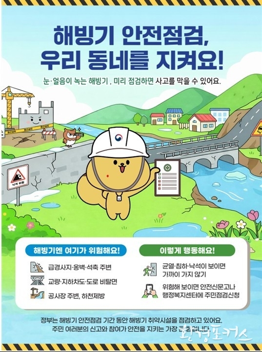 해빙기(2~4월)는 겨울철 얼어 있던 지표면이 기온 상승으로 녹으면서 지반이 약화되는 시기로, 이로 인해 붕괴·전도·낙석 등 각종 안전사고 발생 위험이 증가하는 시기다.