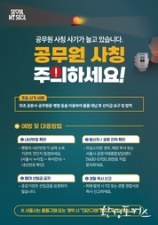 [환경포커스=서울] 서울시는 최근 중·소상공인을 대상으로 공무원 사칭 사기 피해가 끊이지 않고 발생하고 있어, 서울시공정거래종합상담센터 내 ‘공무원 사칭 사기 피해 신고센터’를 설치하고 적극 대응에 나선다고 전했다. 시는 지난 7월 공무원 사칭 피해주의보를 발령한 바 있으나, 사칭 수법이 점차 정교해지고 장기간에 걸쳐 치밀하게 접근하는 피해사례가 계속 접수됨에 따라 전담 신고 창구를 마련하게 됐다. 최근 확인된 사칭 수법은 실제 서울시에서 사용하는 것과 유사한 명함이나 공문서를 위조해 실제 발주처럼 위장한 뒤 ‘대리 납품’이나 ‘긴급 구매’를 명목으로 업체에 선입금을 유도하는 방식이다. 일부 사례에선 수일에 걸쳐 단계적으로 접근하며 실제 행정절차를 따르는 것처럼 상황을 연출하거나 감사 시점이 임박했다는 등의 압박성 사유를 대며 피해자에게 빠른 결정을 강요하기도 했다. 서울시는 피해 확산을 막기 위해, 중·소상공인이 현장에서 즉시 실천할 수 있는 예방 수칙을 제시하고 적극적인 행동을 당부하고 있다. (내선번호 확인) 공무원 명의로 연락이 왔을 경우 명함의 전화번호가 실제 기관 소속인지 서울시 누리집 ‘부서안내’ 메뉴를 통해 확인해야 한다. (발신처/공문 진위
