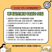 [환경포커스=인천] 인천광역시는 청년 발달장애인의 자산 형성을 지원하는 ‘행복씨앗통장’사업의 2026년도 대상자 200명을 모집한다고 전했다. ‘행복씨앗통장’은 2021년부터 인천시가 추진해 온 사업으로, 청년 발달장애인의 자립을 돕기 위한 프로그램이다. 이 사업은 발달장애인이 3년 동안 매월 15만 원을 적립하면, 인천시와 군·구에서 동일한 금액을 지원하여 매월 총 30만 원이 적립되는 방식으로 운영된다. 만기 시에는 원금 1,080만 원과 이자가 지급된다. 사업 시행 이후 총 370명이 지원금을 수령했다. 적립된 자금은 발달장애인이 자립을 위한 여러 용도로 사용할 수 있다. 주요 사용 용도는 ▲주거비 ▲고등교육비 및 기술훈련비 ▲창업자금 등 자립적인 생활을 위한 비용이며, 또한 ▲장애로 인한 의료비 ▲치료비 ▲보조기구 구입비 등에도 활용될 수 있다. 지원 대상은 공고일 기준(2026.3.18.)으로 인천에 거주하는 16세 이상 39세 이하(1987.1.1. ~ 2010.12.31. 출생) 지적·자폐성 장애인으로, 가구 소득이 기준중위소득 100% 이하인 사람이다. 인천시는 2026년도에 200명을 선발하여, 5월부터 3년간 매칭 지원금을 지원할 예정이다.
